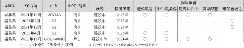 ※ウィンドファーム認証(一般財団法人日本海事協会の行うNK認証が大半)については、風力コンサルティング会社、EPCなどの専門企業との協業での対応実績があります