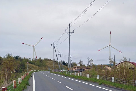 声門ミルクロード沿いの風力発電所